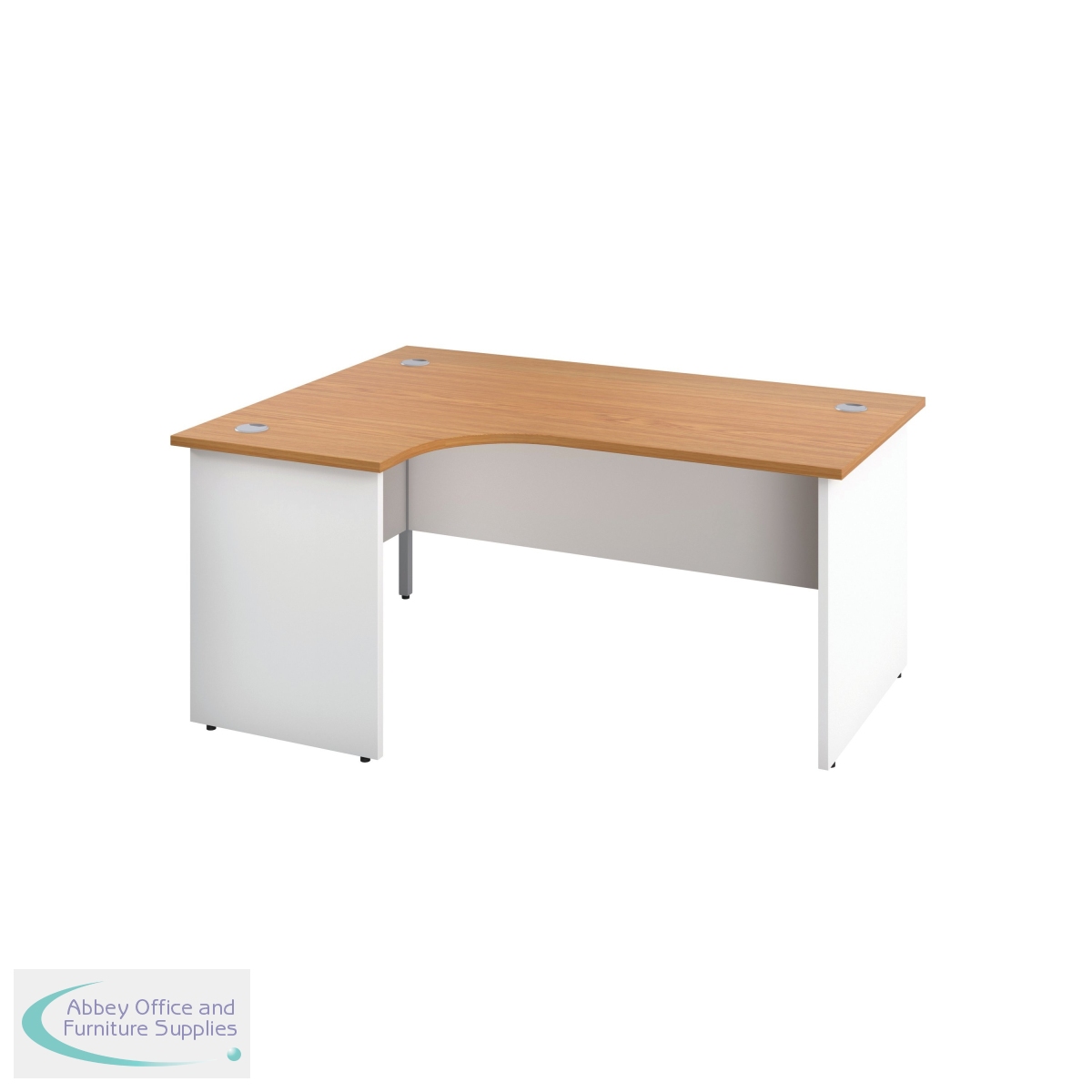 The Jemini Switch range combines traditional desking with contemporary styling, contrasting worktops with white panel end legs. Suitable for use in a variety of office environments, the desk includes a modesty panel as standard with dual 62mm cable management ports to keep worktops tidy. The radial design gives easy access to computers with increased worktop space.