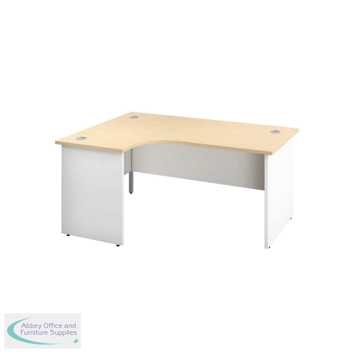 The Jemini Switch range combines traditional desking with contemporary styling, contrasting worktops with white panel end legs. Suitable for use in a variety of office environments, the desk includes a modesty panel as standard with dual 62mm cable management ports to keep worktops tidy. The radial design gives easy access to computers with increased worktop space.