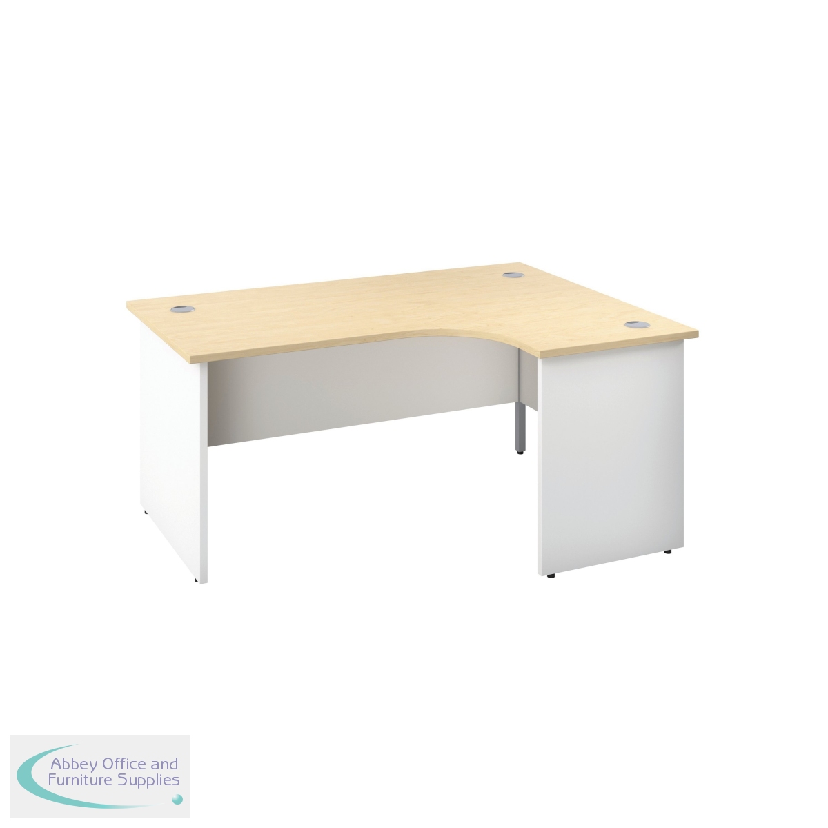 The Jemini Switch range combines traditional desking with contemporary styling, contrasting worktops with white panel end legs. Suitable for use in a variety of office environments, the desk includes a modesty panel as standard with dual 62mm cable management ports to keep worktops tidy. The radial design gives easy access to computers with increased worktop space.