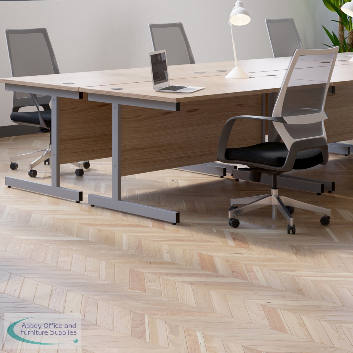 Suitable for use in a variety of office environments. This Jemini Rectangular Cantilever Desk features a strong cantilever frame for support and stability. The desk features a Top Thickness: 25mm with dual 62mm cable management ports to keep workspaces tidy and free from wires. The desk includes a modesty panel as standard and is suitable for use with Jemini Under Desk Pedestals.