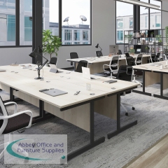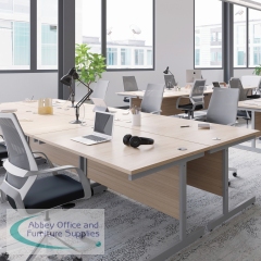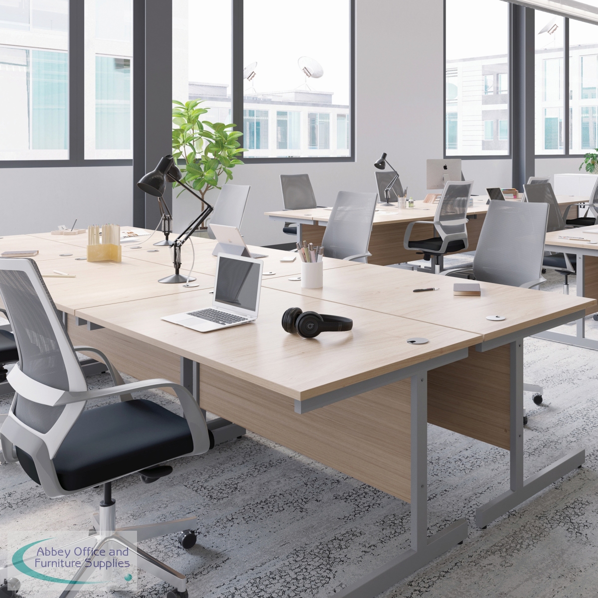 Suitable for use in a variety of office environments. This Jemini Rectangular Cantilever Desk features a strong cantilever frame for support and stability. The desk features a Top Thickness: 25mm with dual 62mm cable management ports to keep workspaces tidy and free from wires. The desk includes a modesty panel as standard and is suitable for use with Jemini Under Desk Pedestals.