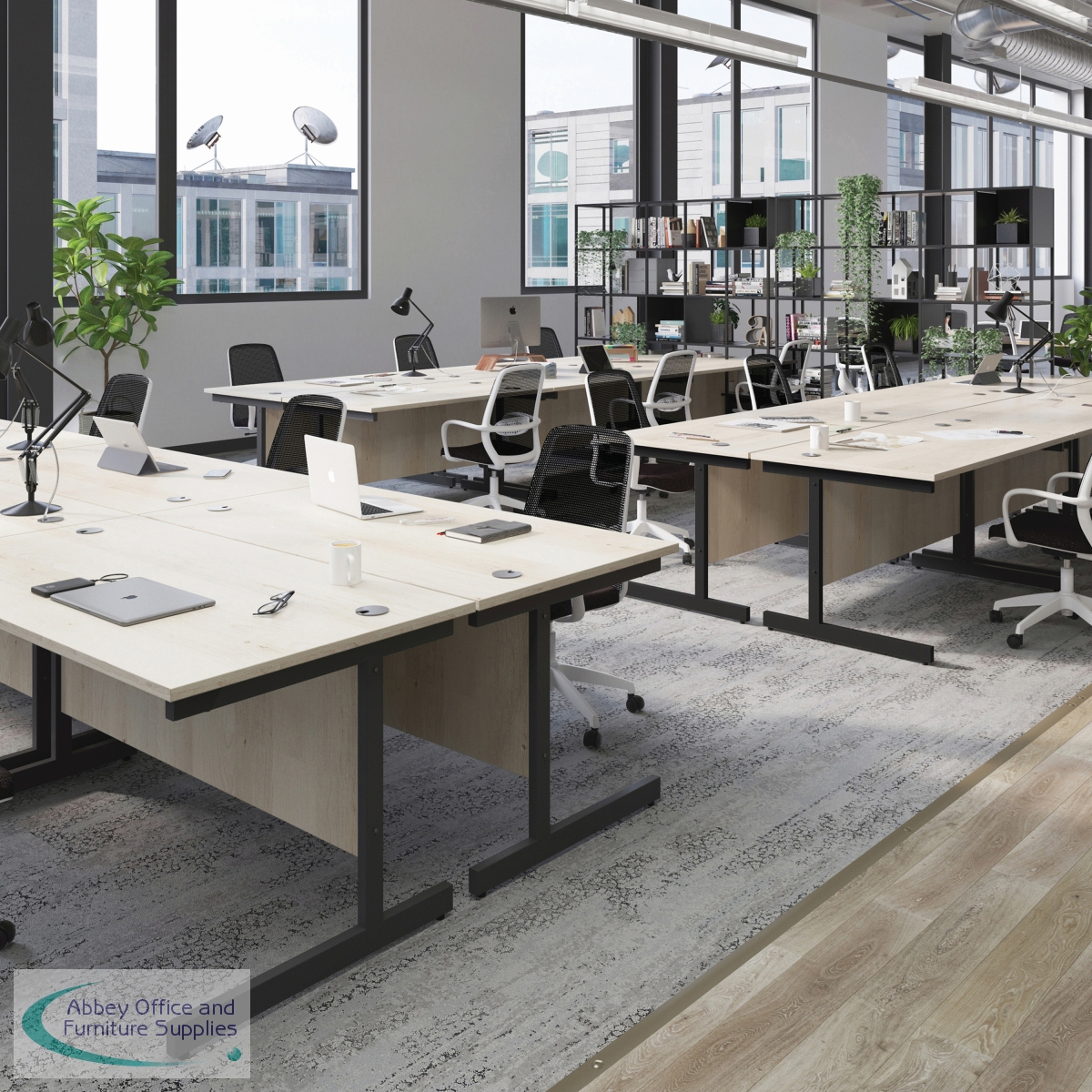 Suitable for use in a variety of office environments. This Jemini Rectangular Cantilever Desk features a strong cantilever frame for support and stability. The desk features a Top Thickness: 25mm with dual 62mm cable management ports to keep workspaces tidy and free from wires. The desk includes a modesty panel as standard and is suitable for use with Jemini Under Desk Pedestals.