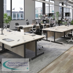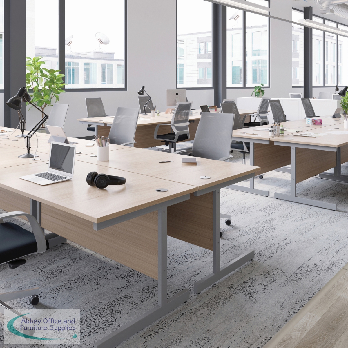 Suitable for use in a variety of office environments. This Jemini Rectangular Cantilever Desk features a strong cantilever frame for support and stability. The desk features a Top Thickness: 25mm with dual 62mm cable management ports to keep workspaces tidy and free from wires. The desk includes a modesty panel as standard and is suitable for use with Jemini Under Desk Pedestals.