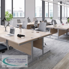 Suitable for use in a variety of office environments. This Jemini Rectangular Cantilever Desk features a strong cantilever frame for support and stability. The desk features a Top Thickness: 25mm with dual 62mm cable management ports to keep workspaces tidy and free from wires. The desk includes a modesty panel as standard and is suitable for use with Jemini Under Desk Pedestals.