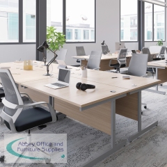 Suitable for use in a variety of office environments. This Jemini Rectangular Cantilever Desk features a strong cantilever frame for support and stability. The desk features a Top Thickness: 25mm with dual 62mm cable management ports to keep workspaces tidy and free from wires. The desk includes a modesty panel as standard and is suitable for use with Jemini Under Desk Pedestals.