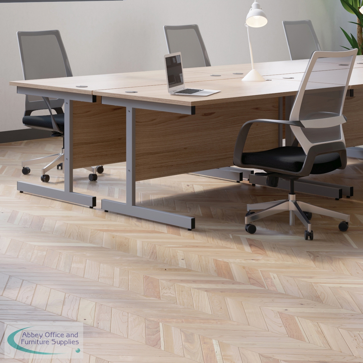 Suitable for use in a variety of office environments. This Jemini Rectangular Cantilever Desk features a strong cantilever frame for support and stability. The desk features a Top Thickness: 25mm with dual 62mm cable management ports to keep workspaces tidy and free from wires. The desk includes a modesty panel as standard and is suitable for use with Jemini Under Desk Pedestals.