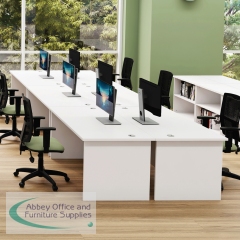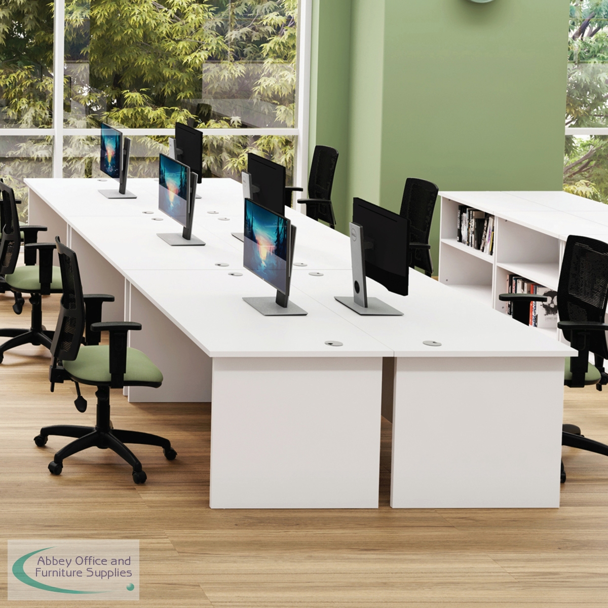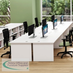 Part of Jemini 's entry level office furniture range that combines traditional desking with contemporary styling. The Rectangular Panel End Desk features a 25mm top with dual cable management ports for neat and tidy cabling. It features modesty panels as standard for privacy with sturdy panel end legs for stability. Suitable for use in a variety of office environments, it can also be used in conjunction with Jemini Desk Pedestals.