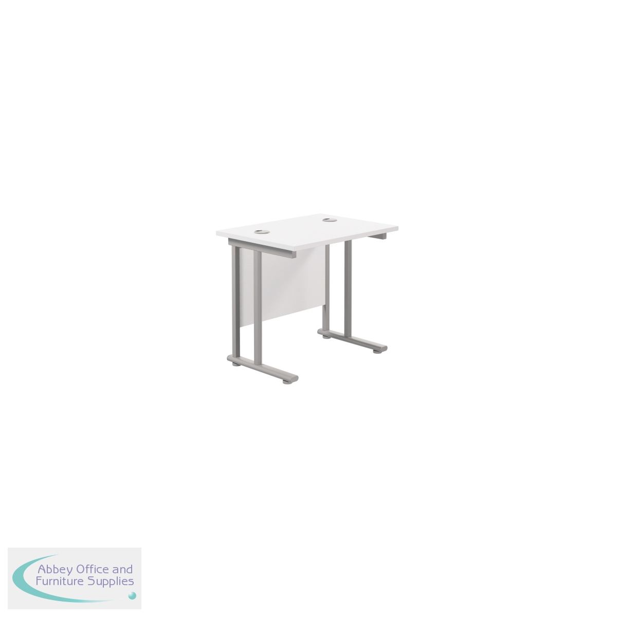 KF806110 - Jemini Double Upright Rectangular Desk 800x600x730mm White/Silver KF806110