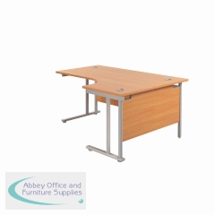 KF807582 - Jemini Radial Right Hand Cantilever Desk 1600x1200x730mm Beech/Silver KF807582