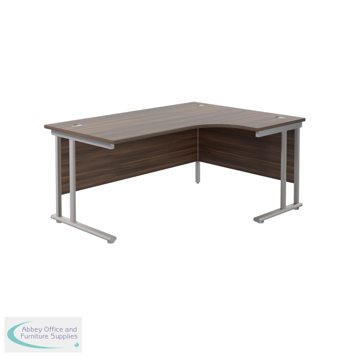 KF807636 - Jemini Radial Right Hand Cantilever Desk 1600x1200x730mm Dark Walnut/Silver KF807636