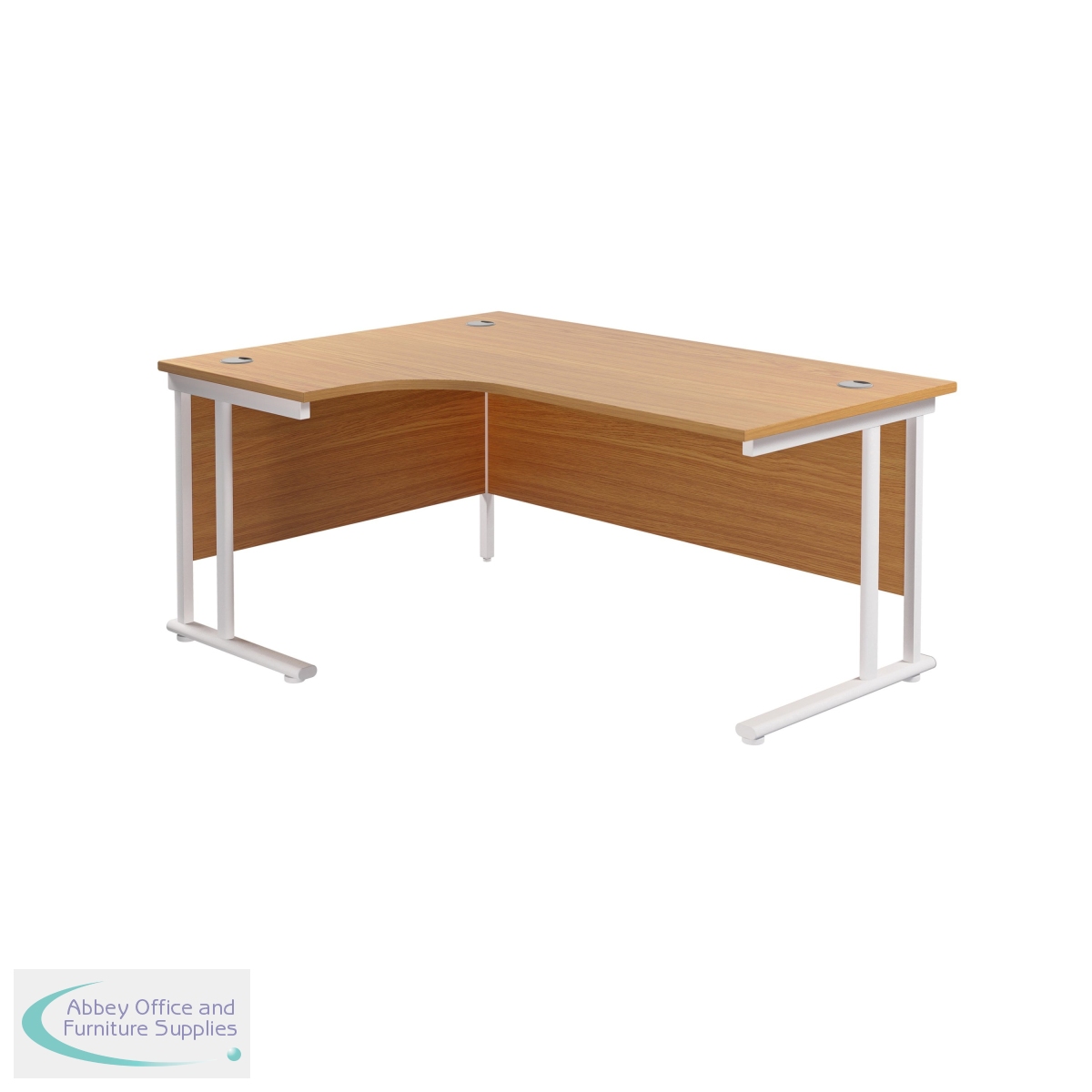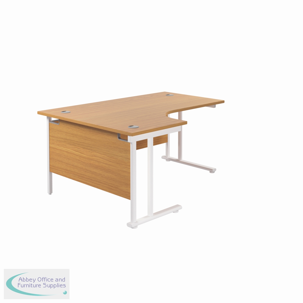 Suitable for use in a variety of office environments. This Jemini Cantilever Desk features double upright legs for improved stability, with height adjustable feet up to 10mm. The radial design offers easy working access to your computer, as well as ample additional desktop space. The 25mm thick MFC desktop features 2mm edge banding and 80mm dual cable management ports. The desk includes a modesty panel as standard and is suitable for use with Jemini Fixed Pedestals on the 800mm end.