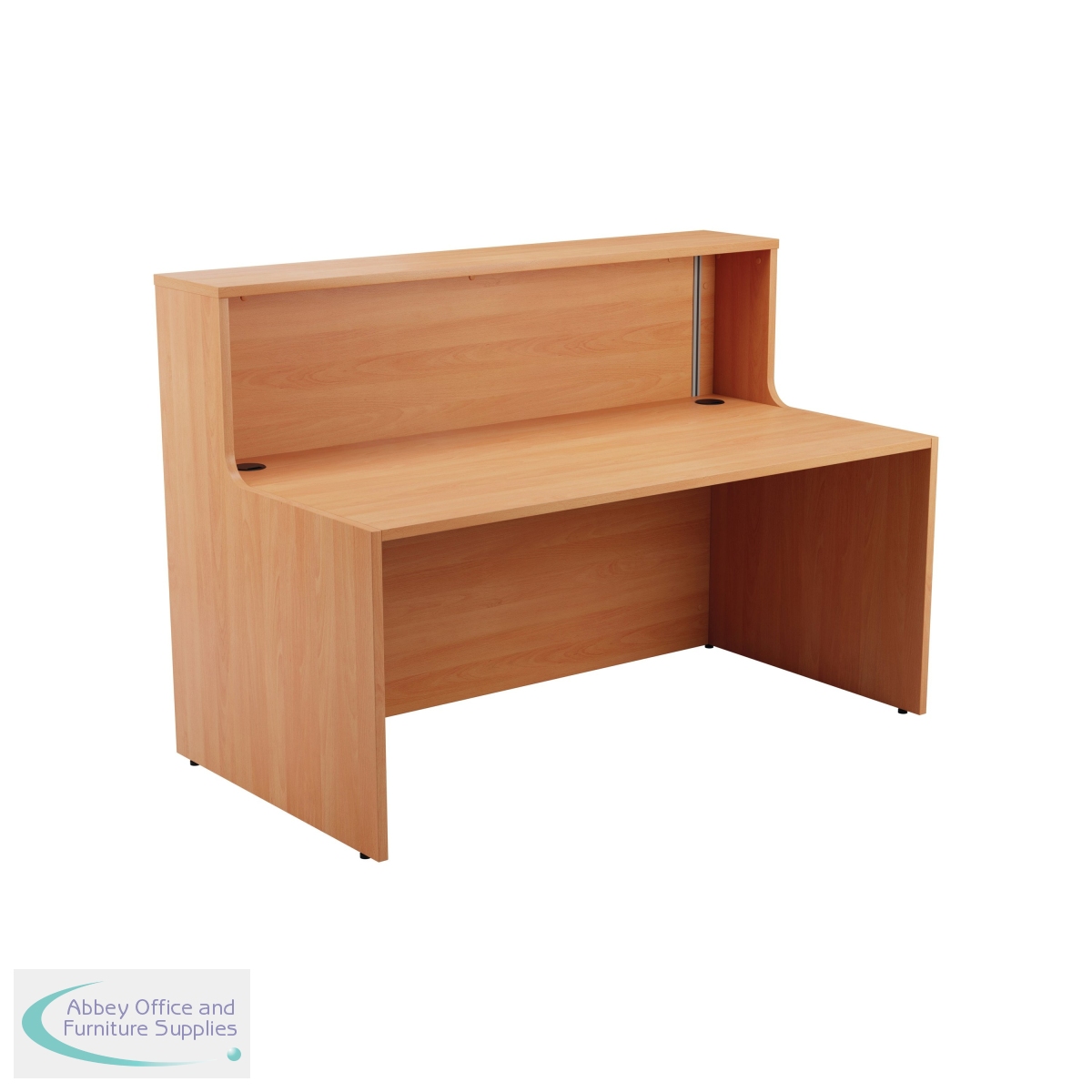 With clean and elegant lines, this Jemini Reception Unit is ideal for use in a variety of reception areas. The modular design features a panel end construction incorporating a fixed riser unit. The unit has a sturdy 25mm thick desktop. This reception unit measures 1600x800x740mm and is finished in Beech.