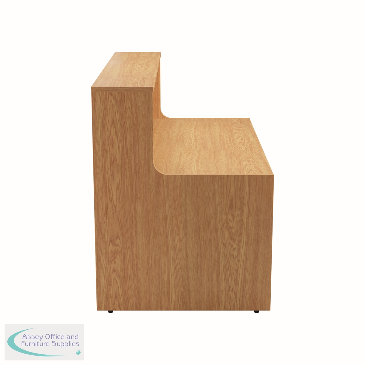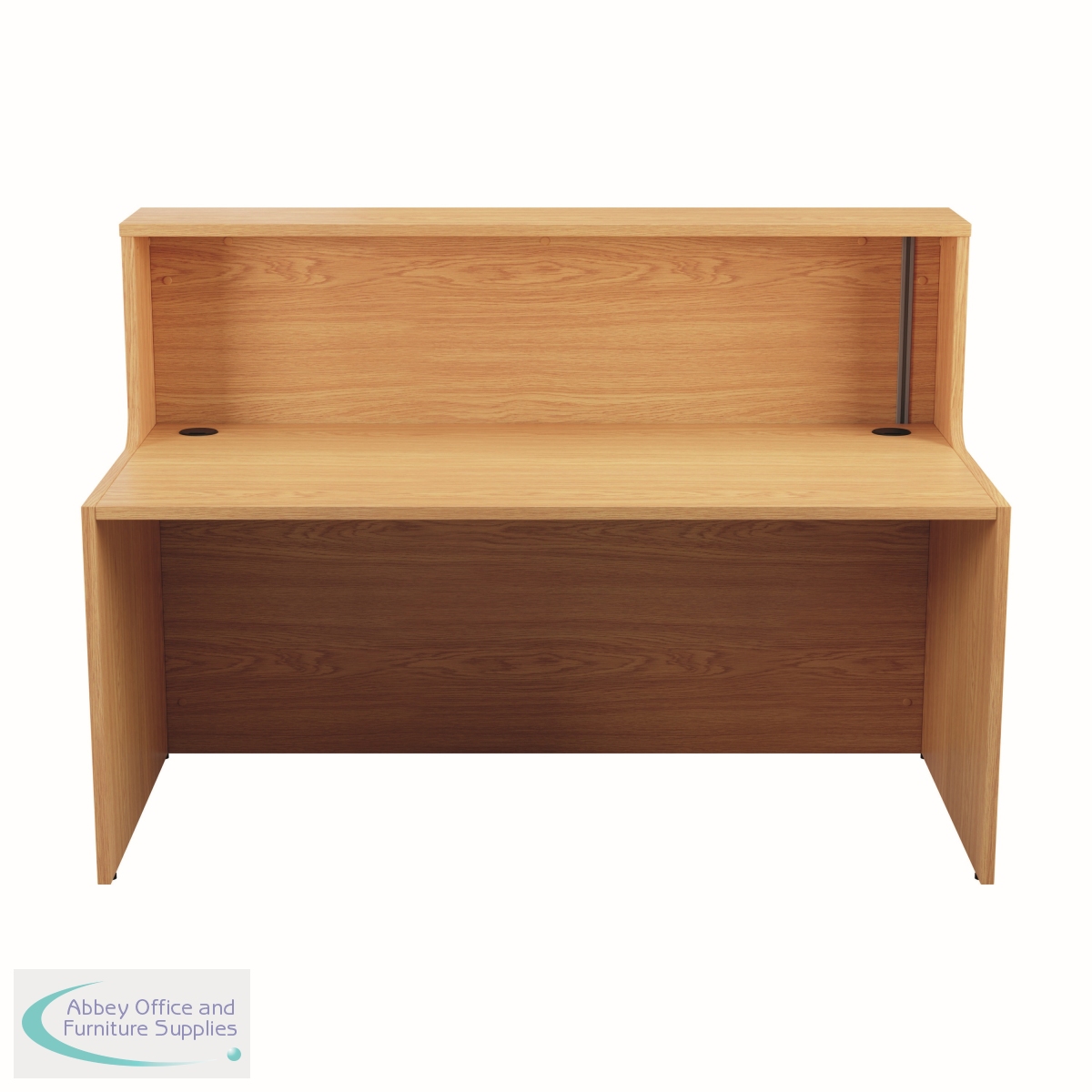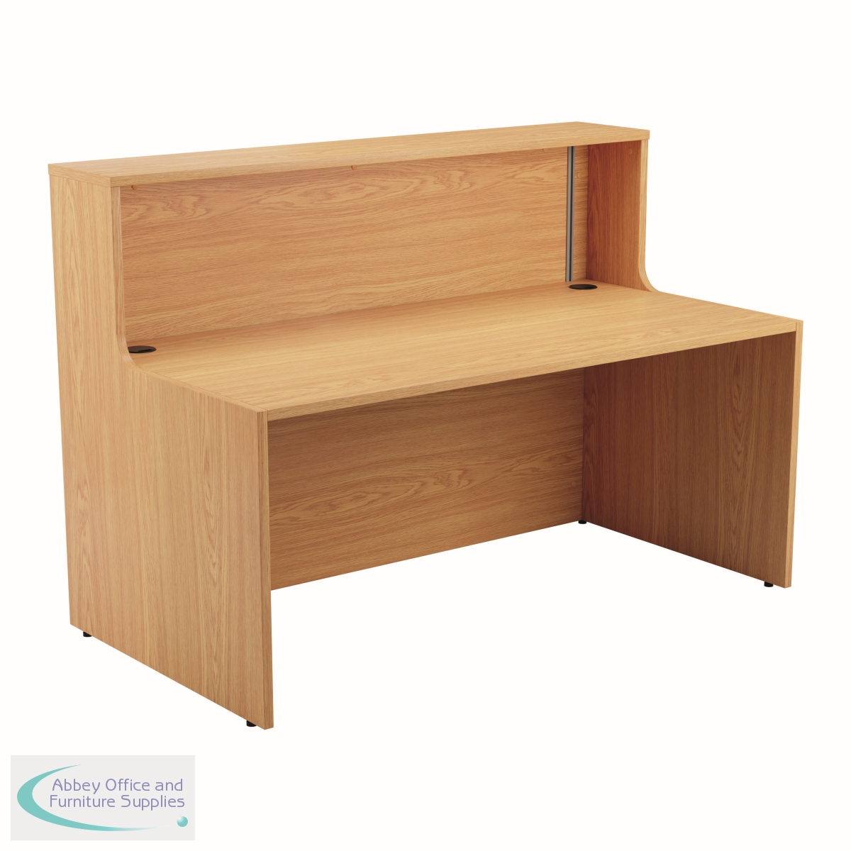 With clean and elegant lines, this Jemini Reception Unit is ideal for use in a variety of reception areas. The modular design features a panel end construction incorporating a fixed riser unit. The unit has a sturdy 25mm thick desktop. This reception unit measures 1600x800x740mm and is finished in Nova Oak.