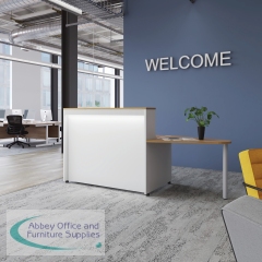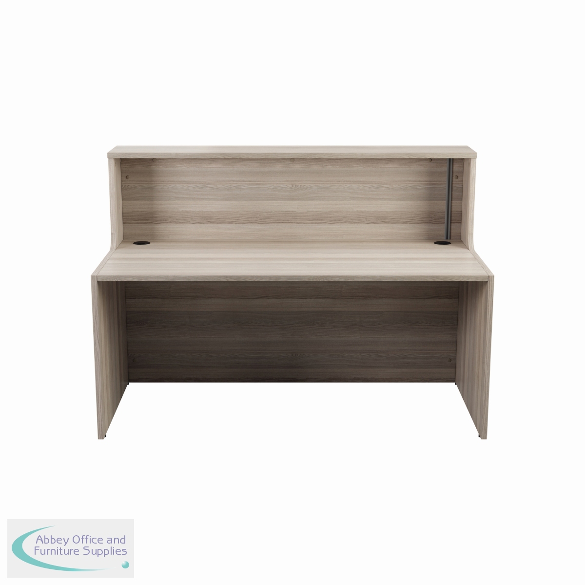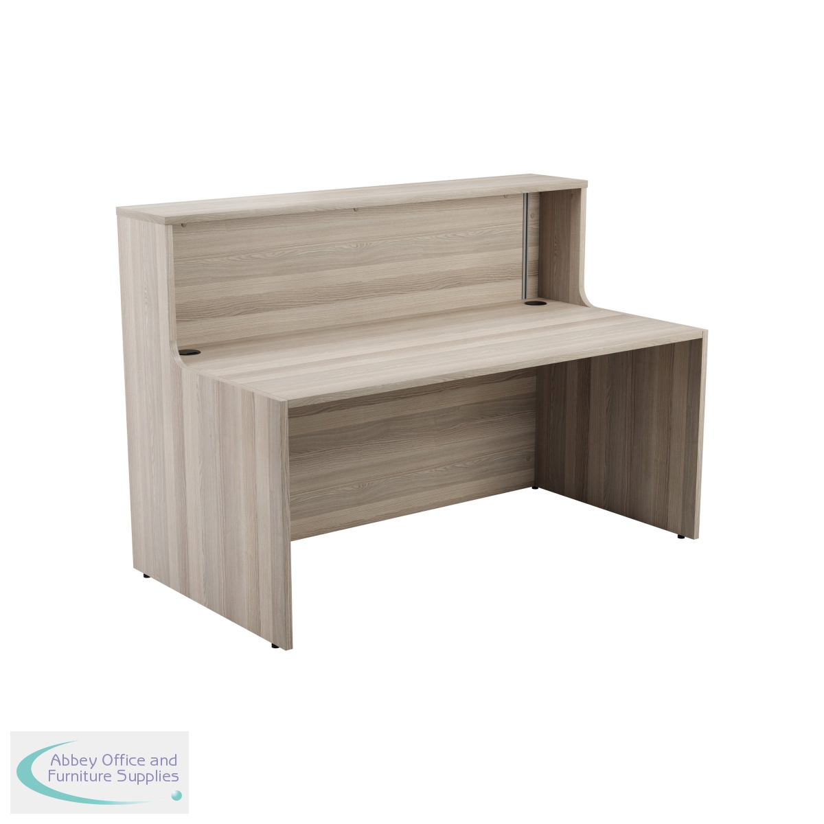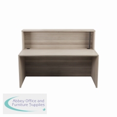 With clean and elegant lines, this Jemini Reception Unit is ideal for use in a variety of reception areas. The modular design features a panel end construction incorporating a fixed riser unit. The unit has a sturdy 25mm thick desktop. This reception unit measures 1400x800x740mm and is finished in Grey Oak.