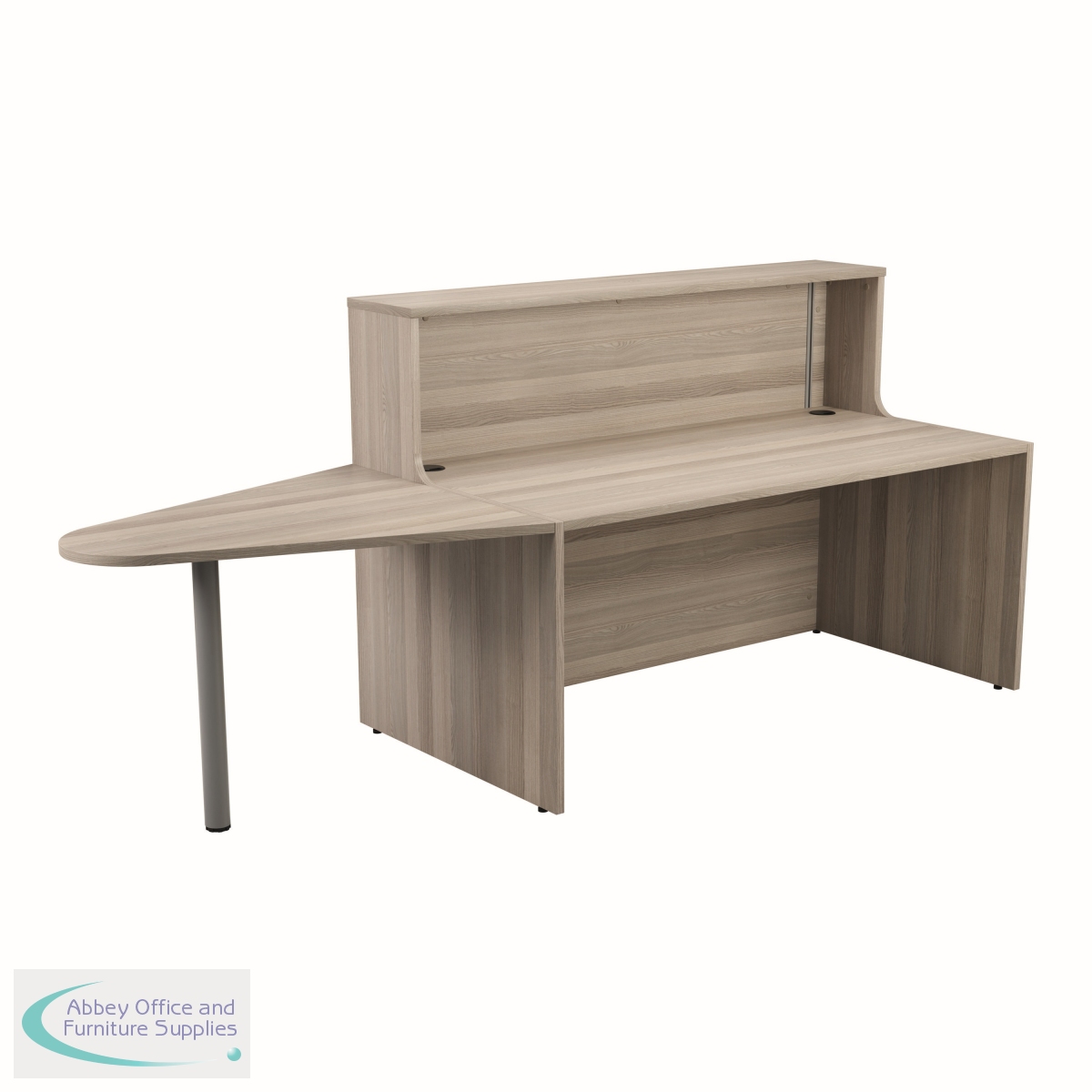 With clean and elegant lines, this Jemini Reception Unit is ideal for use in a variety of reception areas. The modular design features a built-in modesty board as standard, as well as a sturdy 25mm thick desktop. The extension unit allows extra desk space or to allow access for wheelchair users. This reception unit comes with an extension and is finished in Grey Oak.