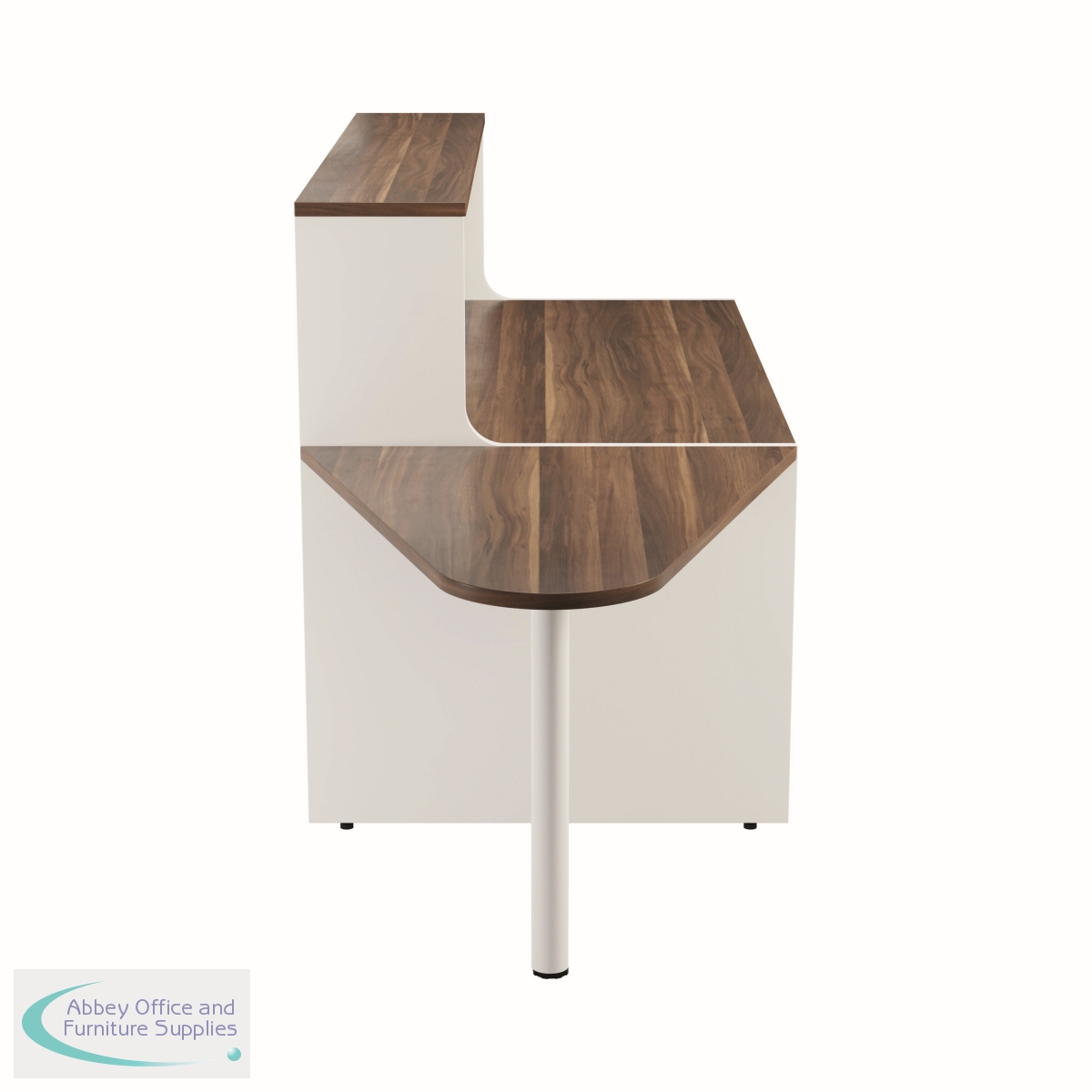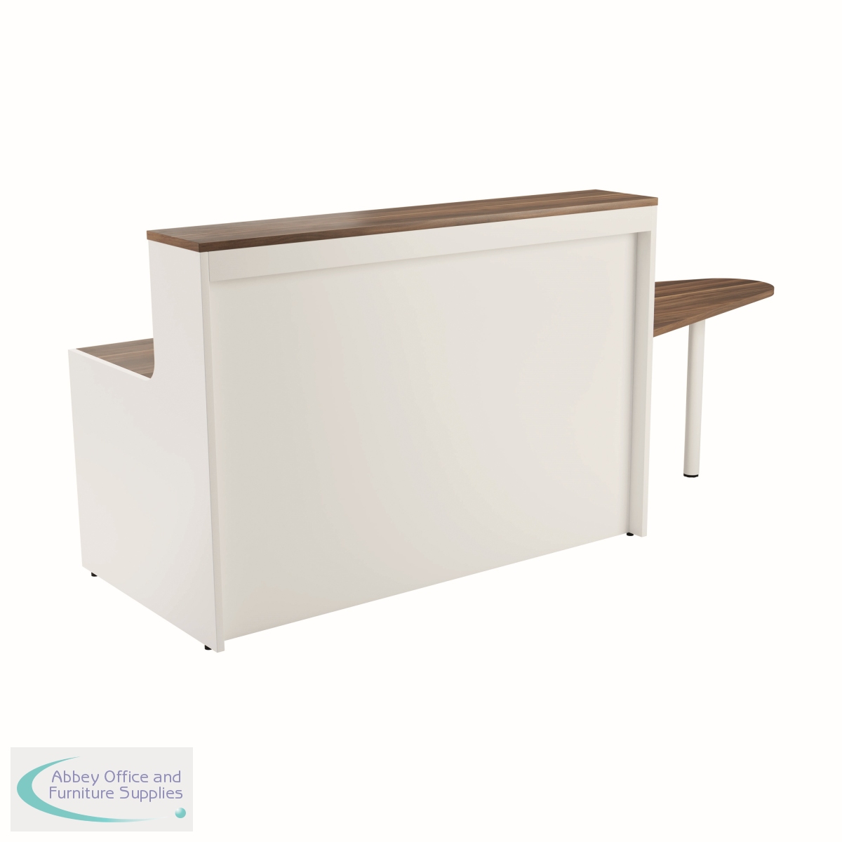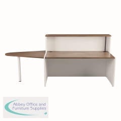 With clean and elegant lines, this Jemini Reception Unit is ideal for use in a variety of reception areas. The modular design features a built-in modesty board as standard, as well as a sturdy 25mm thick desktop. The extension unit allows extra desk space or to allow access for wheelchair users. This reception unit comes with an extension and has a white base with a top finished in Dark Walnut.