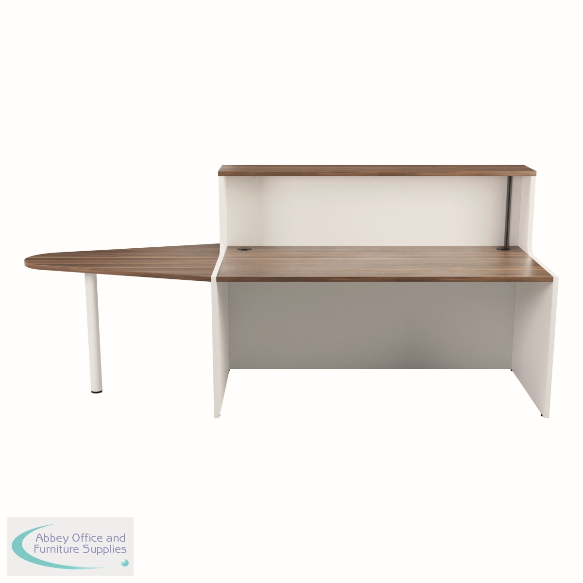 With clean and elegant lines, this Jemini Reception Unit is ideal for use in a variety of reception areas. The modular design features a built-in modesty board as standard, as well as a sturdy 25mm thick desktop. The extension unit allows extra desk space or to allow access for wheelchair users. This reception unit comes with an extension and has a white base with a top finished in Dark Walnut.