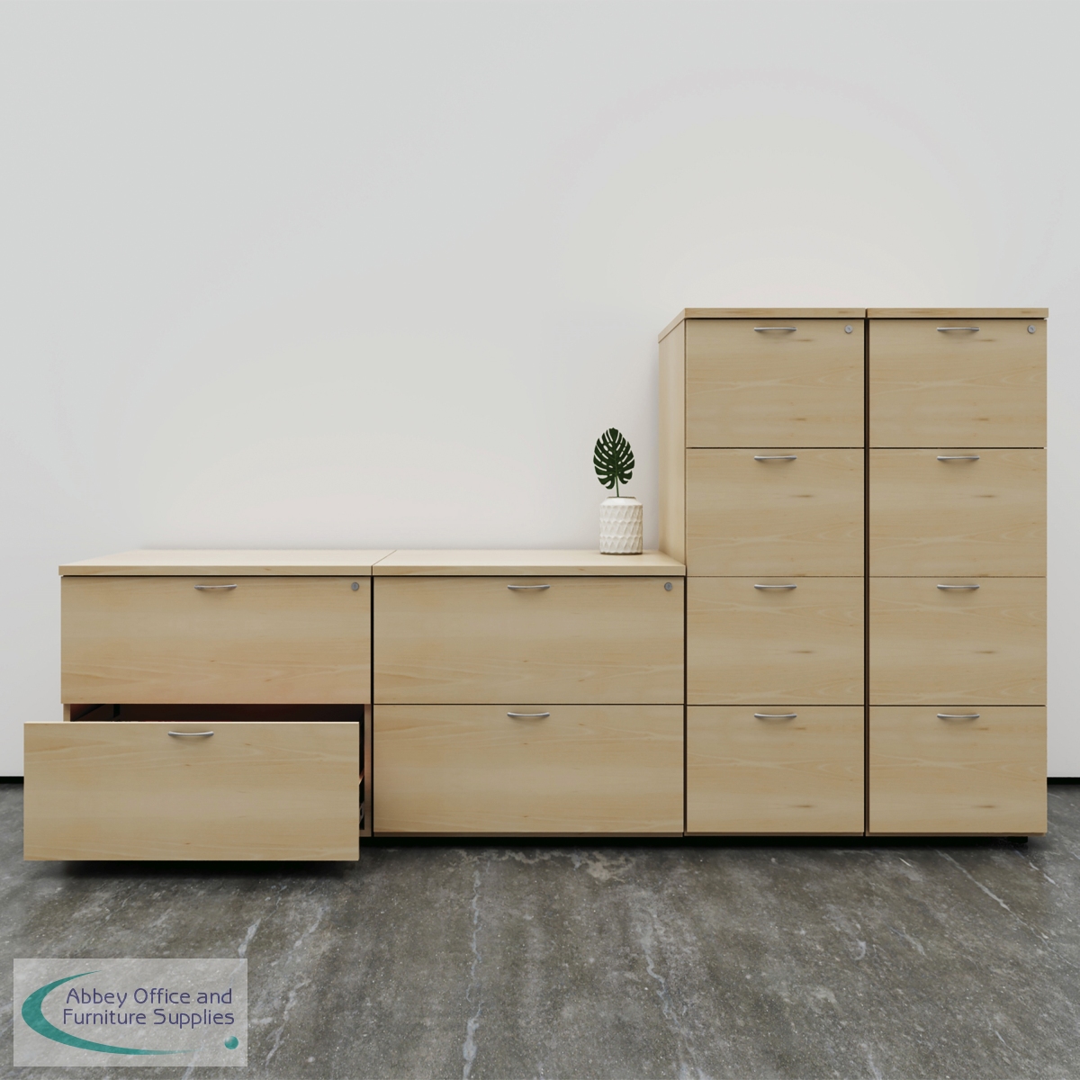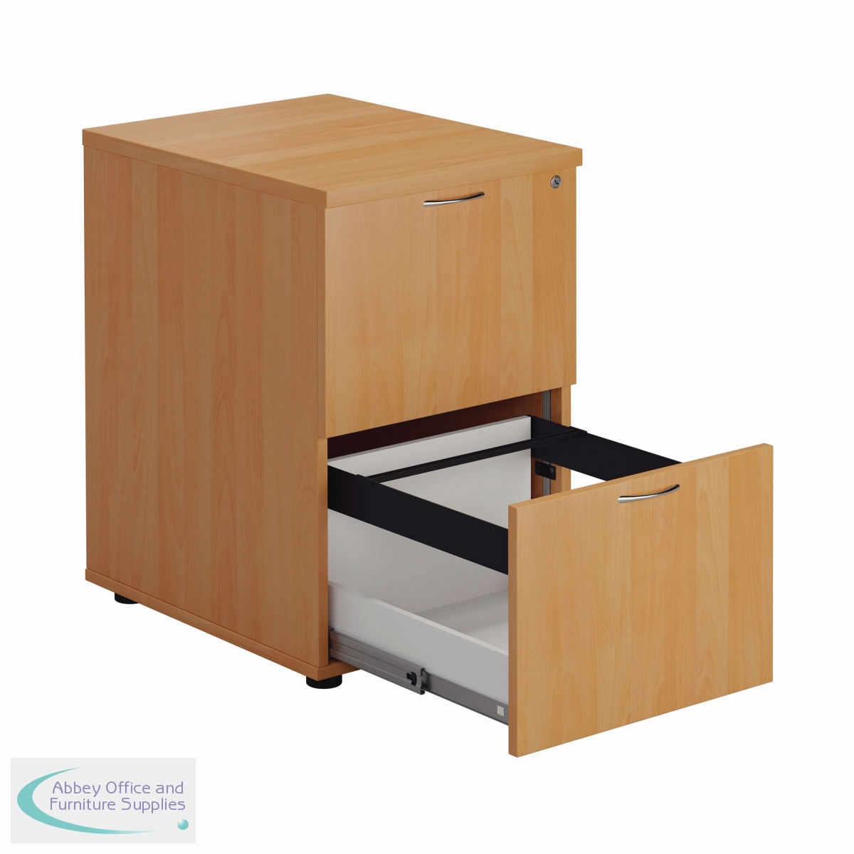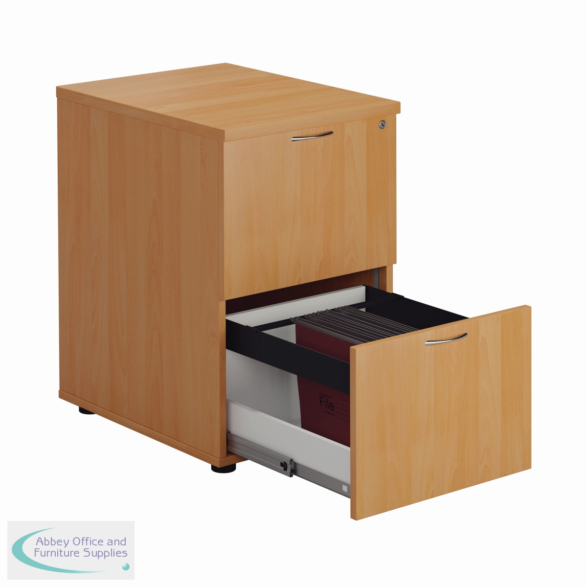Designed for foolscap suspension files, this First 2 drawer filing cabinet features a robust frame with a contemporary beech finish and anti-tilt technology for secure filing. The 2 drawers are lockable for storing confidential files and have a capacity of 25kg each. This filing cabinet measures W465 x D600 x H710mm.