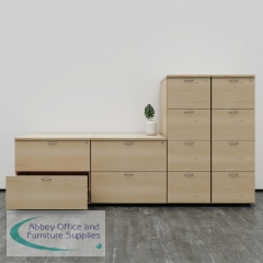 Designed for foolscap suspension files, this First 4 drawer filing cabinet features a robust frame with a contemporary beech finish and anti-tilt technology for secure filing. The 4 drawers have a capacity of 25kg each. This filing cabinet measures W465 x D600 x H1365mm.