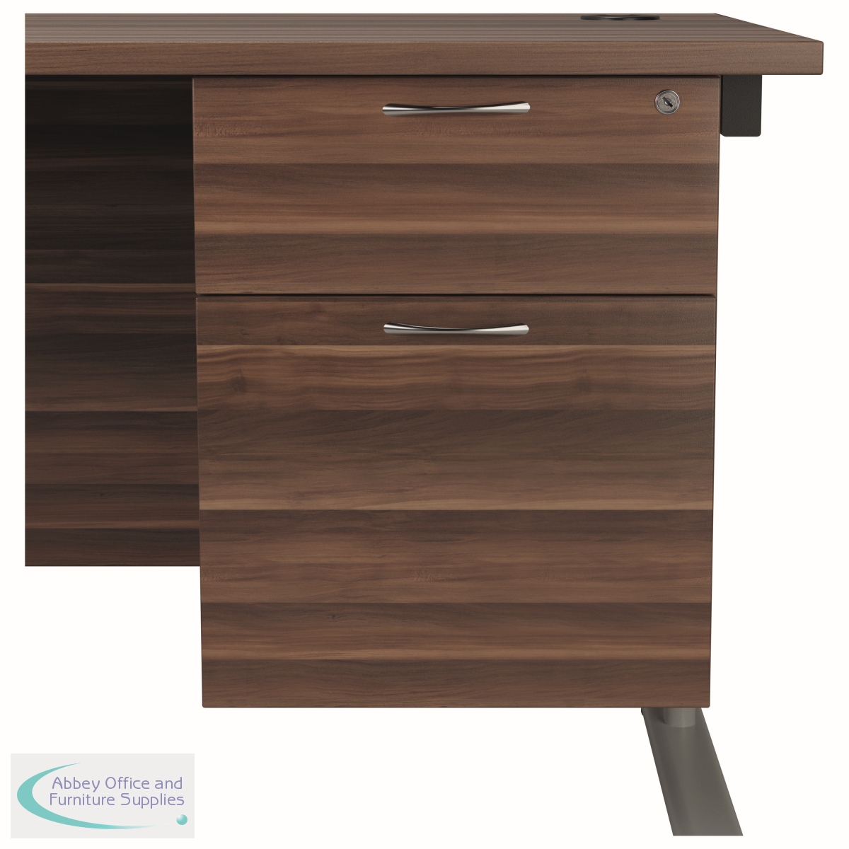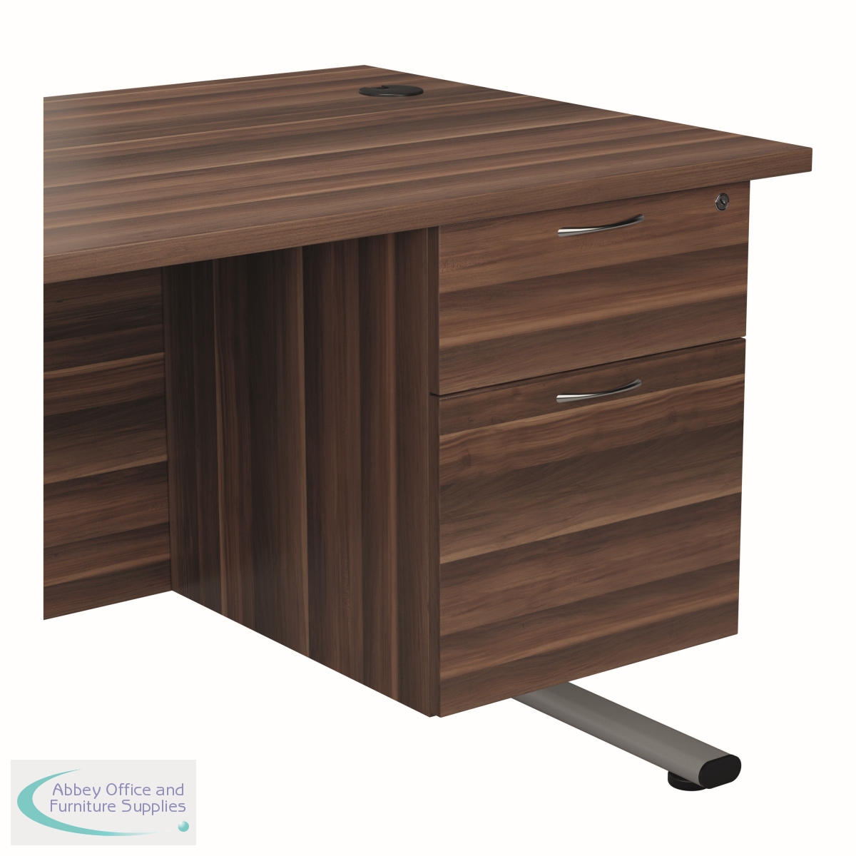Offering a convenient and flexible place to store documents, papers and stationery, this fixed pedestal in Dark Walnut fits Jemini standard desking. The pedestal features 1 box drawer and 1 filing drawer suitable for foolscap suspension filing. This pedestal measures W400 x D500 x H510mm.