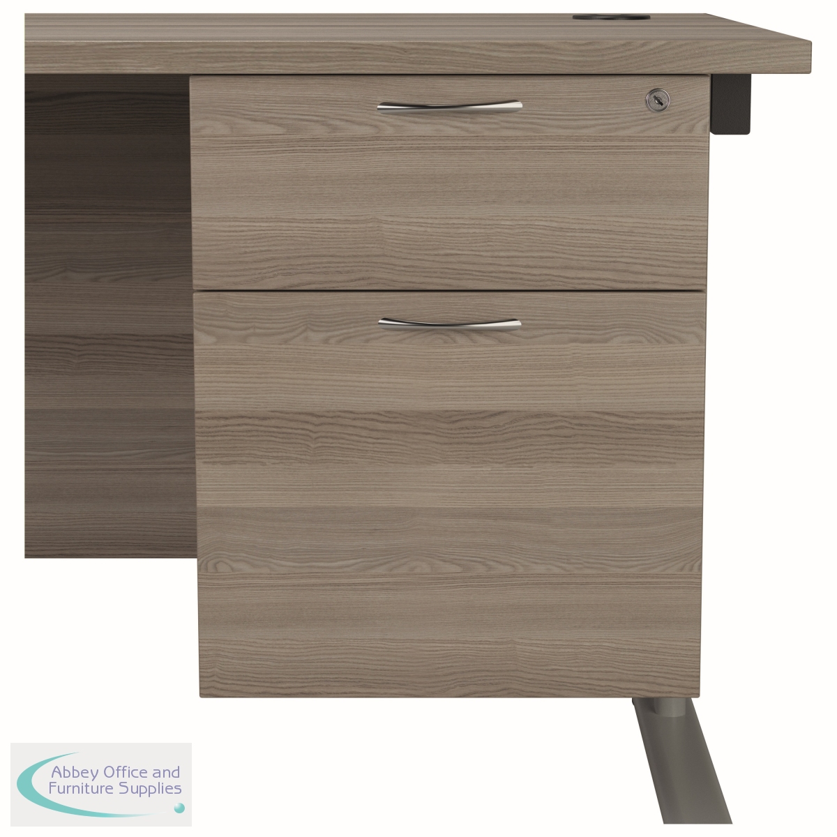 Offering a convenient and flexible place to store documents, papers and stationery, this fixed pedestal in Grey Oak fits Jemini standard desking. The pedestal features 1 box drawer and 1 filing drawer suitable for foolscap suspension filing. This pedestal measures 404x655x495mm.