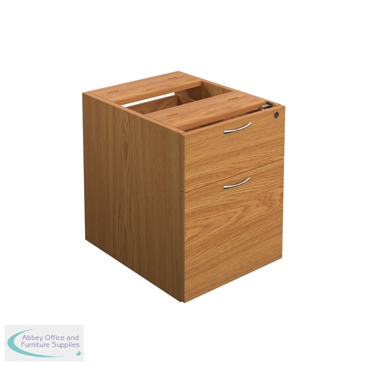 Finished in Nova Oak, the Jemini fixed pedestal features 2 drawers including 1 box drawer and 1 foolscap size filing drawer. The box drawer will take A4 files. Measuring W400 x D500 x H495mm with a 25mm desktop, this Jemini fixed pedestal is designed for use with single upright desks, making an ideal storage solution.