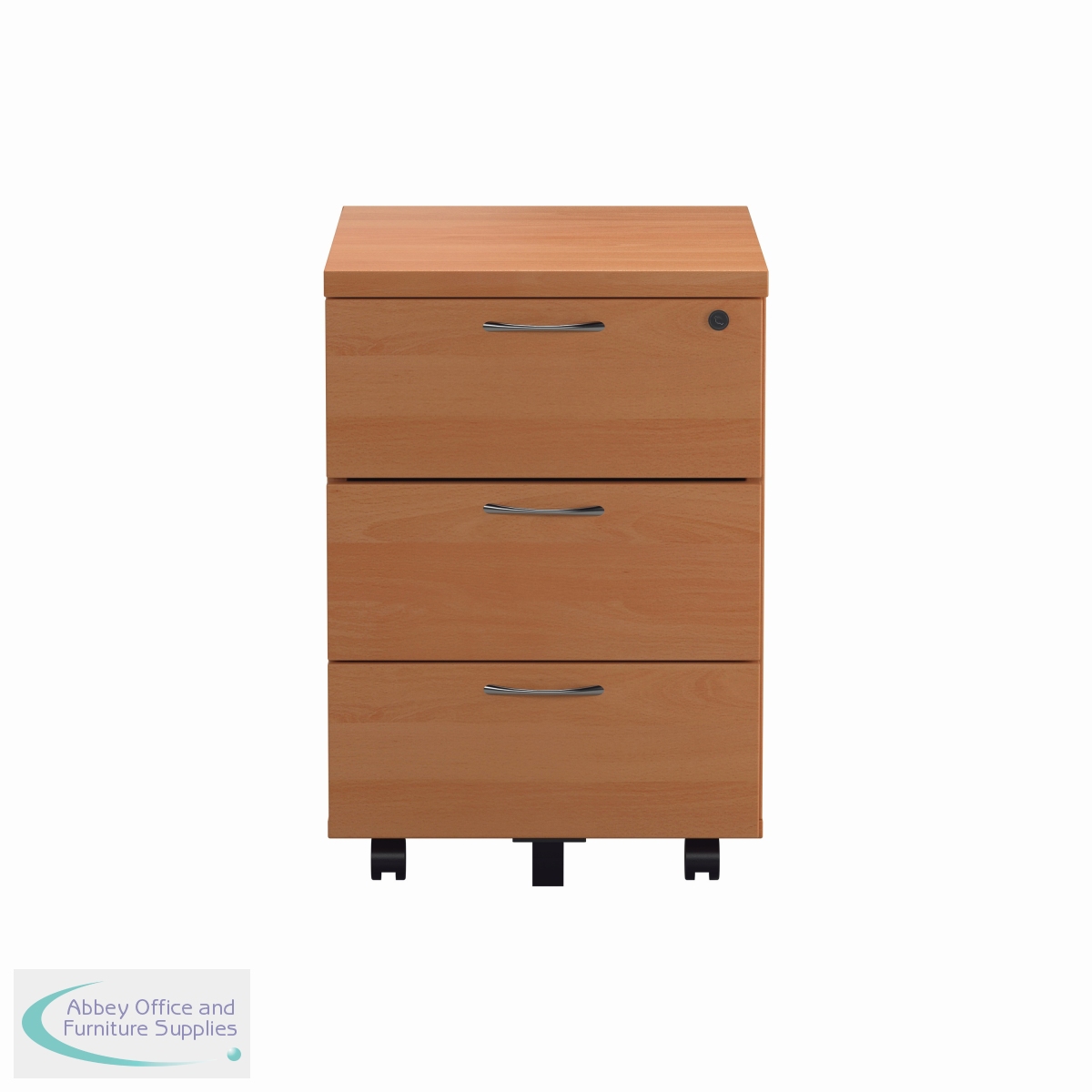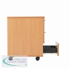 Finished in Beech, this Jemini mobile pedestal features 3 box drawers which will take A4 files. Designed for use under desks or for use independently, the pedestal measures W404 x D500 x H595mm with a desktop depth of 25mm.
