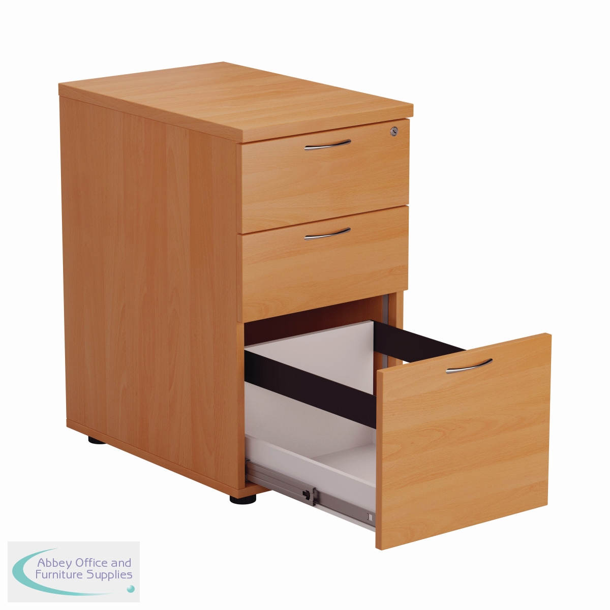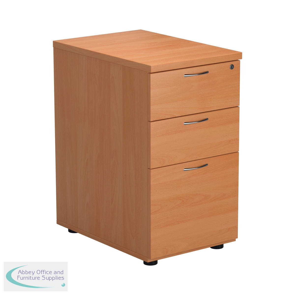 Suitable for use with the 600mm deep desking and radial desks, this 3 drawer desk high pedestal includes 2 box drawers and 1 foolscap size filing drawer. The box drawers will take A4 files. Measuring W404 x D600 x H730mm with a 25mm desktop the pedestal is finished in Beech.