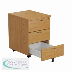 Finished in Nova Oak, this Jemini mobile pedestal features 3 box drawers which will take A4 files. Designed for use under desks or for use independently, the pedestal measures W404 x D500 x H595mm with a desktop depth of 25mm.