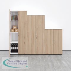 This Jemini Cupboard provides a convenient storage solution for organised office filing. Complete with four shelves, this cupboard is suitable for filing and storing lever arch and box files. The cupboard measures W800 x D450 x H2000mm and comes in a white finish with grey oak doors to complement the Jemini furniture range.