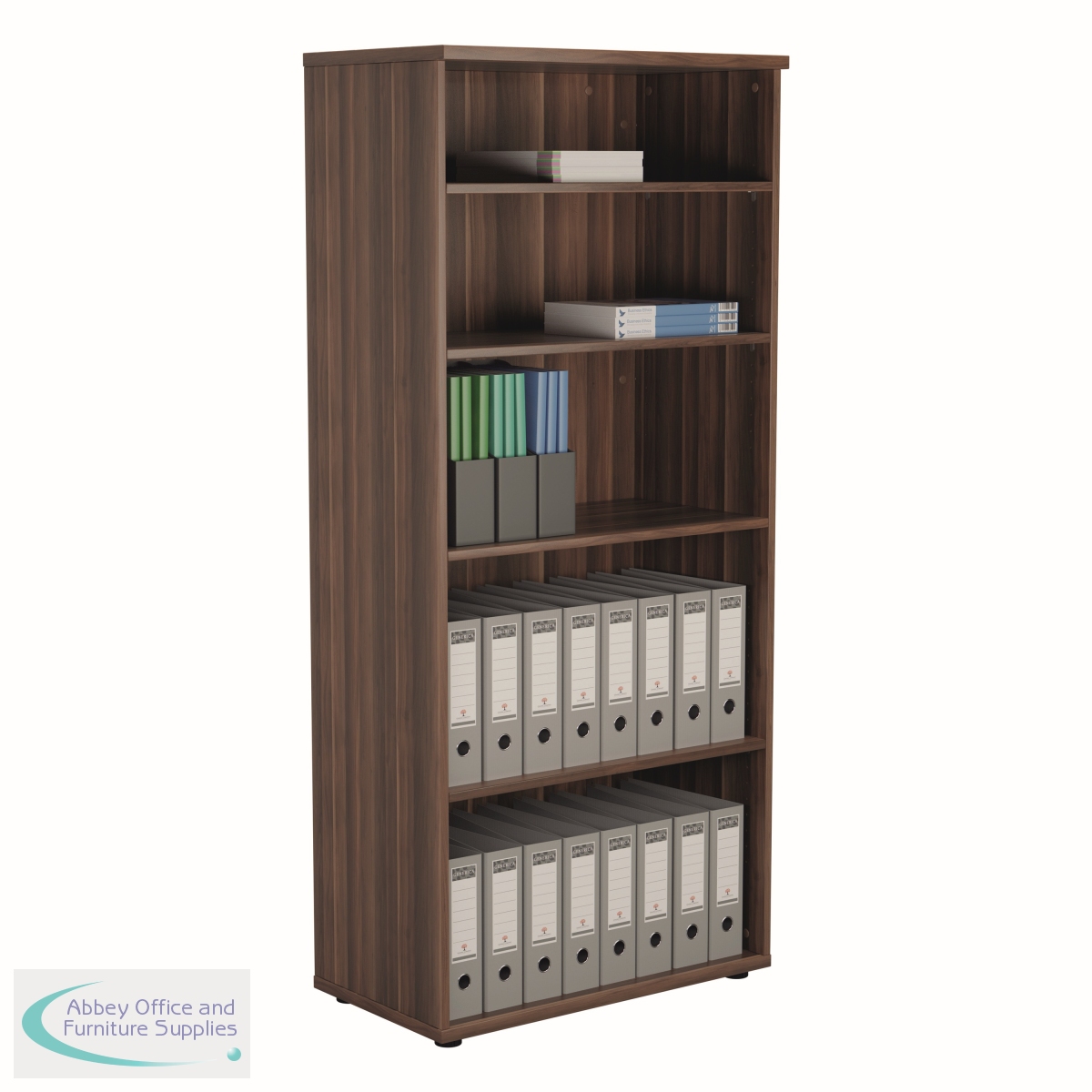 This Jemini Bookcase provides a convenient storage solution for organised office filing. Complete with four shelves, this bookcase is suitable for filing and storing lever arch and box files. The bookcase measures W800 x D450 x H1800mm and comes in a dark walnut finish to complement the Jemini furniture range.