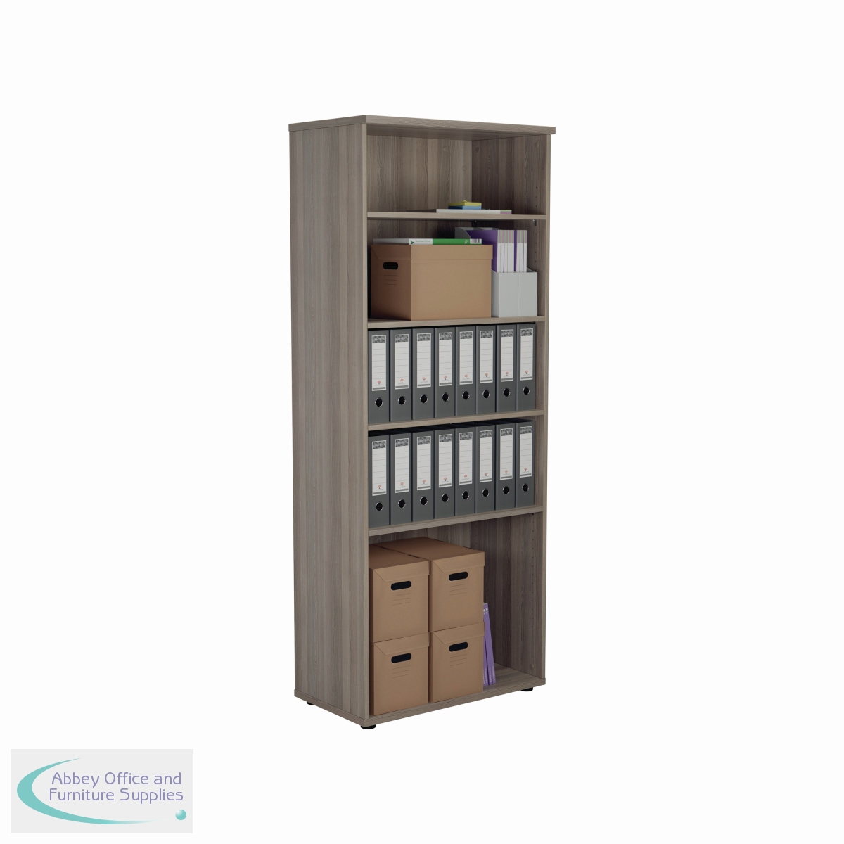 This Jemini Bookcase provides a convenient storage solution for organised office filing. Complete with four shelves, this bookcase is suitable for filing and storing lever arch and box files. The bookcase measures W800 x D450 x H2000mm and comes in a grey oak finish to complement the Jemini furniture range.
