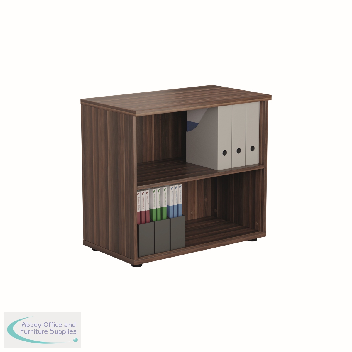 This Jemini Bookcase provides a convenient storage solution for organised office filing. Complete with one shelf, this bookcase is suitable for filing and storing lever arch and box files. The bookcase measures W800 x D450 x H700mm and comes in a dark walnut finish to complement the Jemini furniture range.