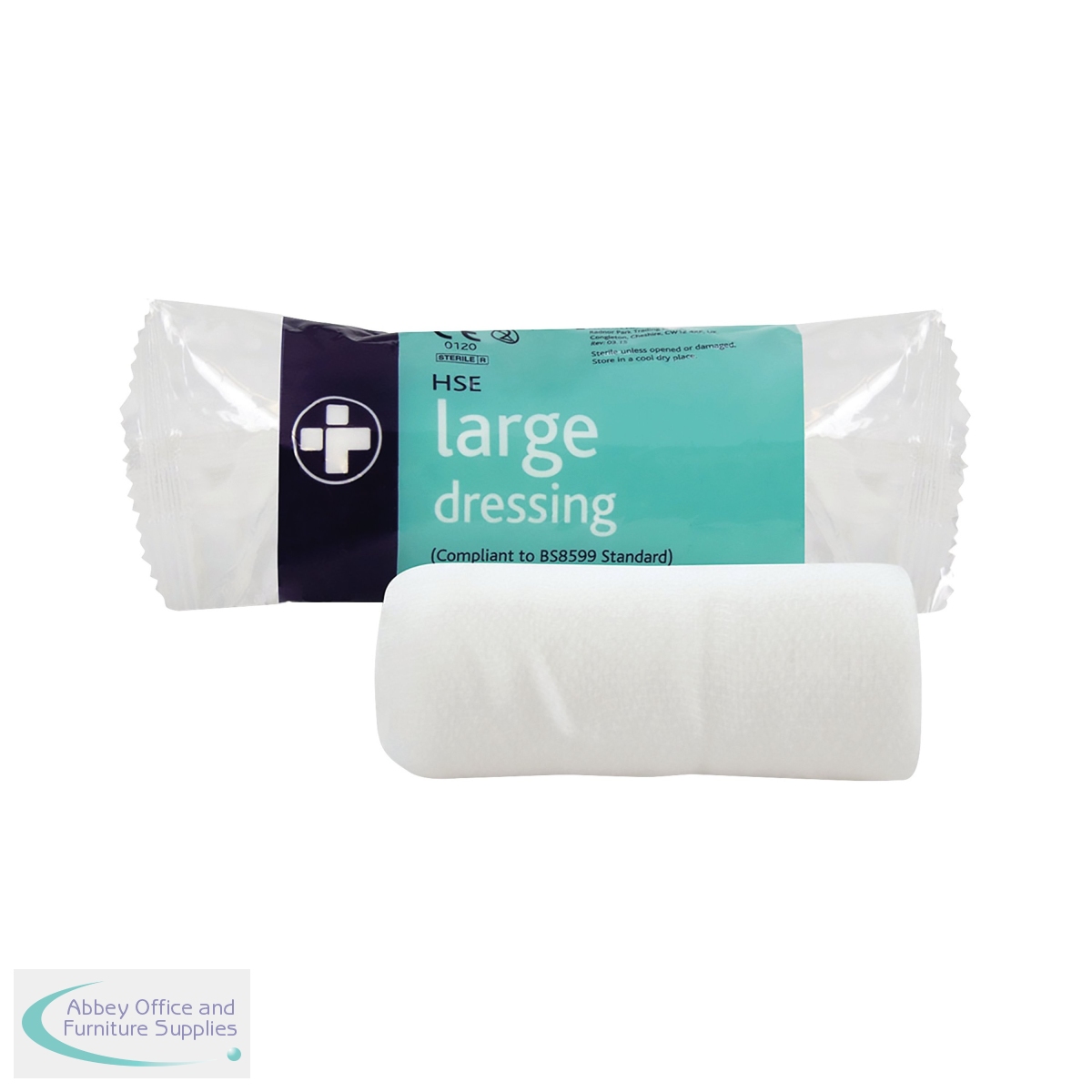 This Reliance Medical dressing features a sterile, non-adherent pad to place over a wound, and comes complete with a conforming stretch bandage. HSE compliant, the dressing can be used to re-stock first aid kits in the workplace or at home. Each large sterile dressing measures 180 x 180mm. This pack contains 10 dressings in plastic packaging.