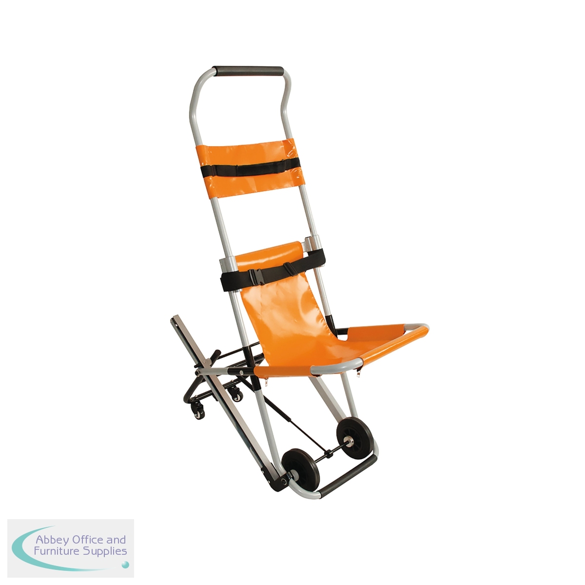 This lightweight and compact Reliance Medical Evacuation Chair features an adjustable head pad and safety strap to help keep the patient secure. The sturdy chair is made from an aluminium alloy with a wipe clean seat and head rest that is impervious to bodily fluids. Easy to manoeuvre on two rear wheels, the chair comes complete with a cover and bracket for wall mounting. This chair measures W520 x D900 x H1360mm when opened and W520 x D200 x H1120mm when folded for storage.