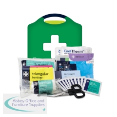 This Reliance Medical Motokit contains 1 x triangular bandage, 1 x adherent dressing pad, 1 x HSE medium dressing, 1 x medium trauma dressing, 2 x burn dressings, 10 x washproof plasters, 1 x foil blanket, 1 x resuscitation face shield, 10 x cleansing wipes, 1 x pair of gloves, 1 x pair of shears and a first aid guidance leaflet. This medium kit is designed for use in cars, taxis, vans and trucks with up to 8 passengers.