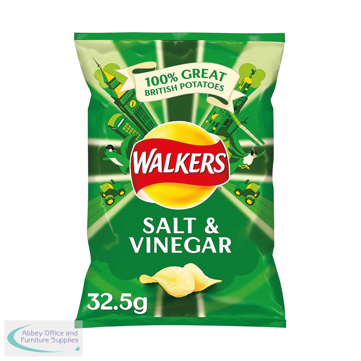 Enjoy these delicious salt and vinegar flavour crisps from the nations favourite crisp manufacturer, Walkers. These delightfully indulgent crisps are made from 100% Great British potatoes and are cooked in Sunseed oil, ensuring that they are naturally lower in saturates that other traditional cooking oils. Walkers crisps are free from artificial colours and preservatives, contain no MSG and are suitable for vegetarians. This bulk pack of salt and vinegar crisps contains 32 packs of 32.5g.
