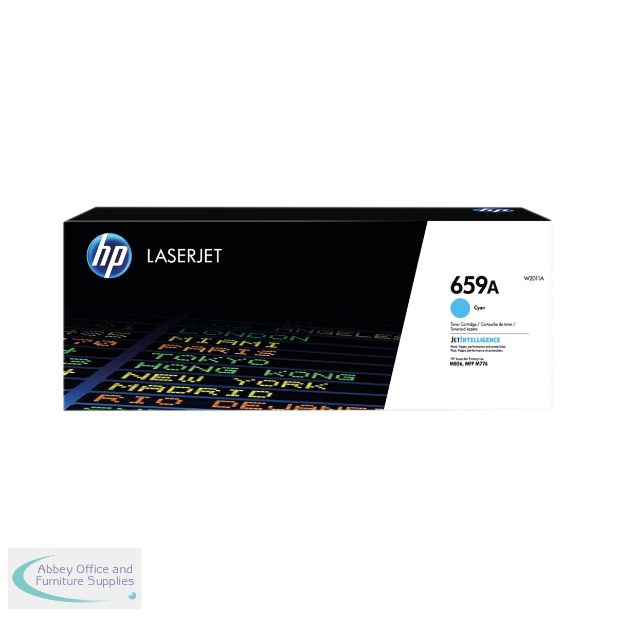 The HP 659A original LaserJet toner cartridge is for use with HP Color LaserJet Enterprise M856 Printer series and HP Color LaserJet Enterprise MFP M776 series. This standard yield toner cartridge has a print yield of up to 13,000 pages. Supplied in a pack of 1 cyan laser toner cartridge.