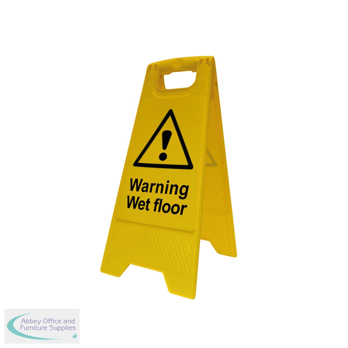 Made from bright yellow plastic, this sturdy A board is printed with a clear 'Warning Wet floor' message on either side and the universally recognisable symbol for danger. Providing a warning for visitors and staff to avoid any accidents on slippery surfaces, this heavy-duty A board features a handle for carrying and folds flat for easier transport and storage.