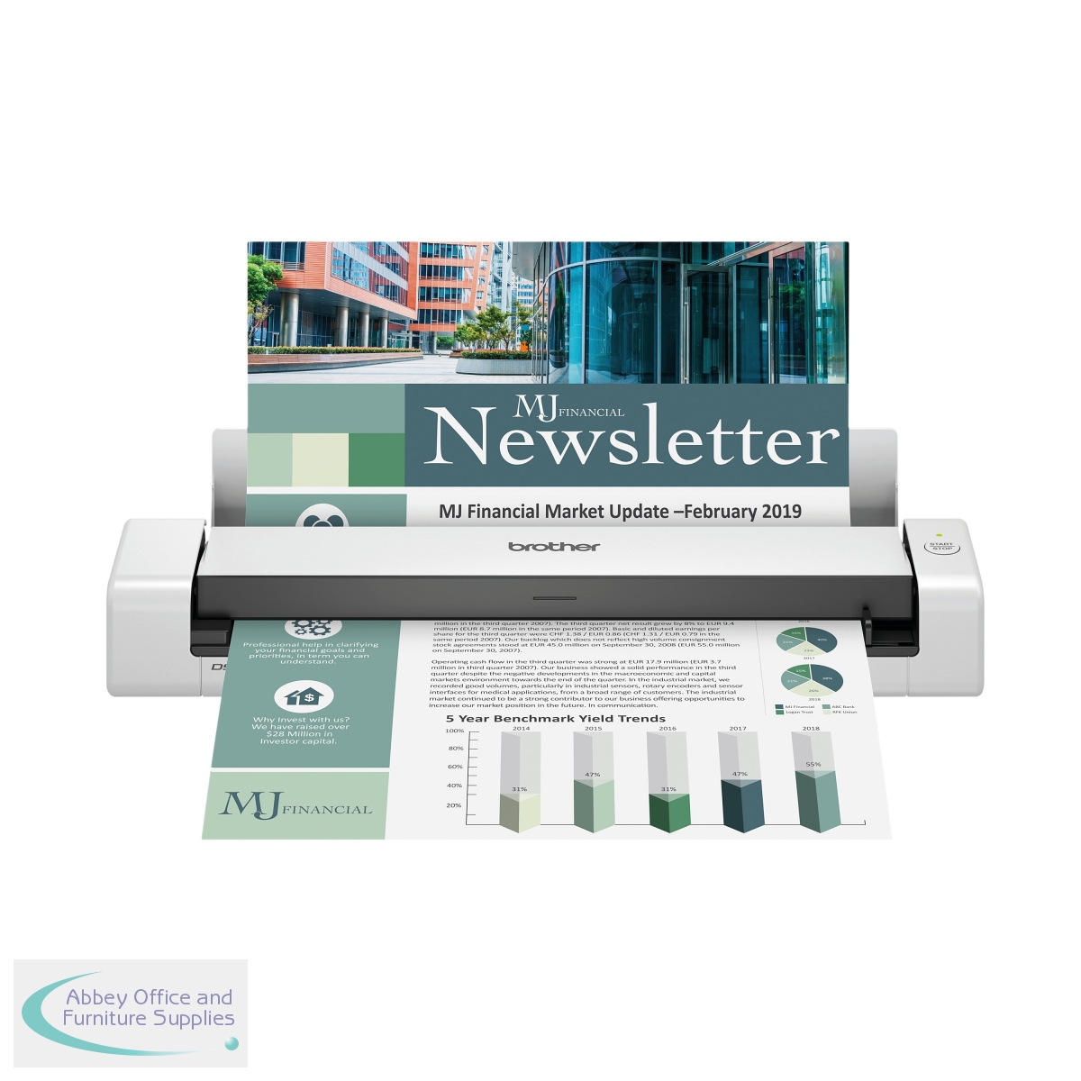 The Brother DS740D document scanner has a scan speed for both colour and monochrome prints of up to 15 pages per minute, creating high quality digital files. The vertical exit of the paper means that there is no need for additional space behind the scanner. Designed with efficiency in mind, the scanner will digitize, save and share information, ensuring digital files are easy to find, modify and share. Light and compact, the DS-740D is perfect for mobile workers or when space is limited and offers fast scanning of double-sided documents.