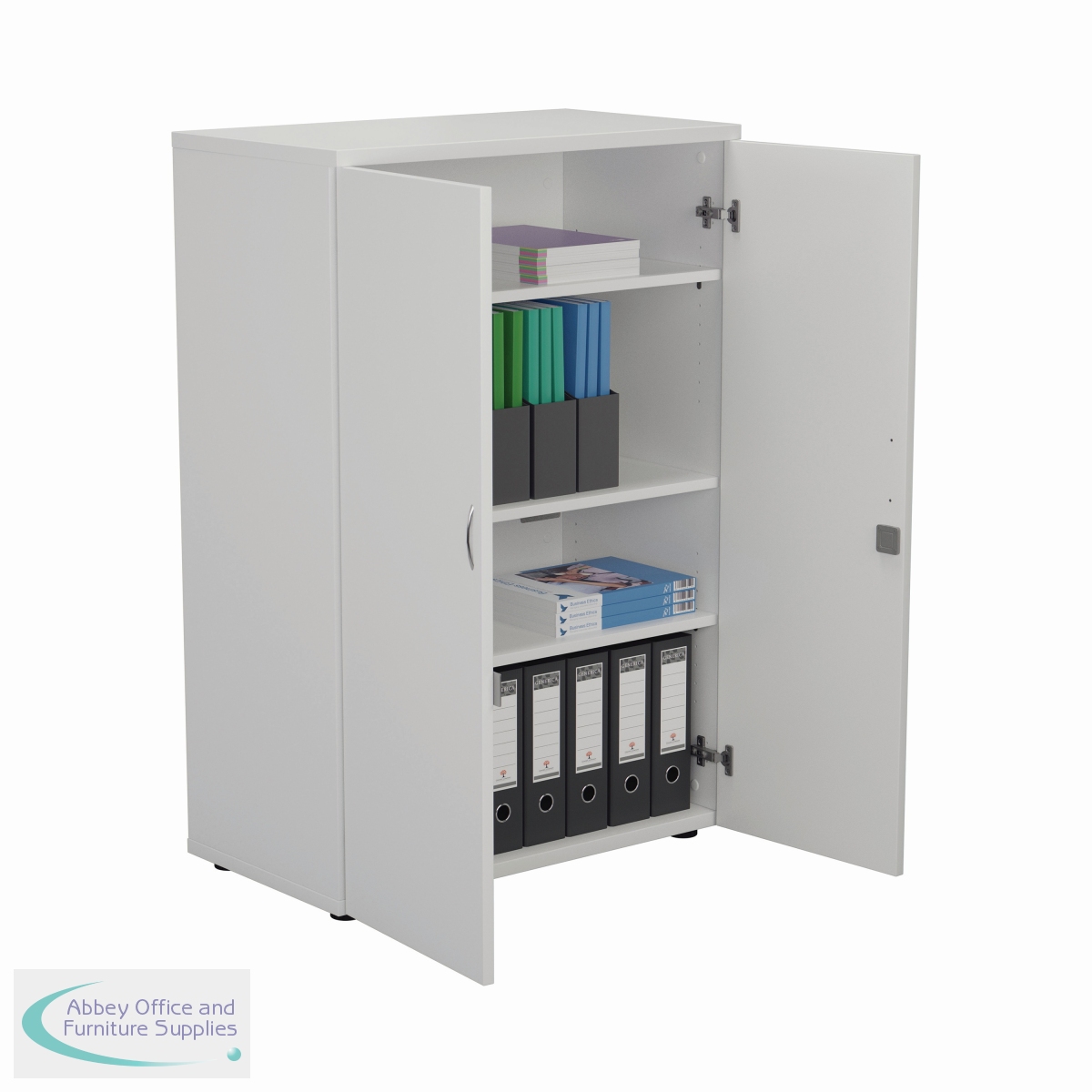 This First Cupboard provides a convenient storage solution for organised office filing. Complete with three shelves, this cupboard is suitable for filing and storing lever arch and box files and includes two lockable doors. The cupboard measures W800 x D450 x H1200mm and comes in a white finish to complement the First furniture range.