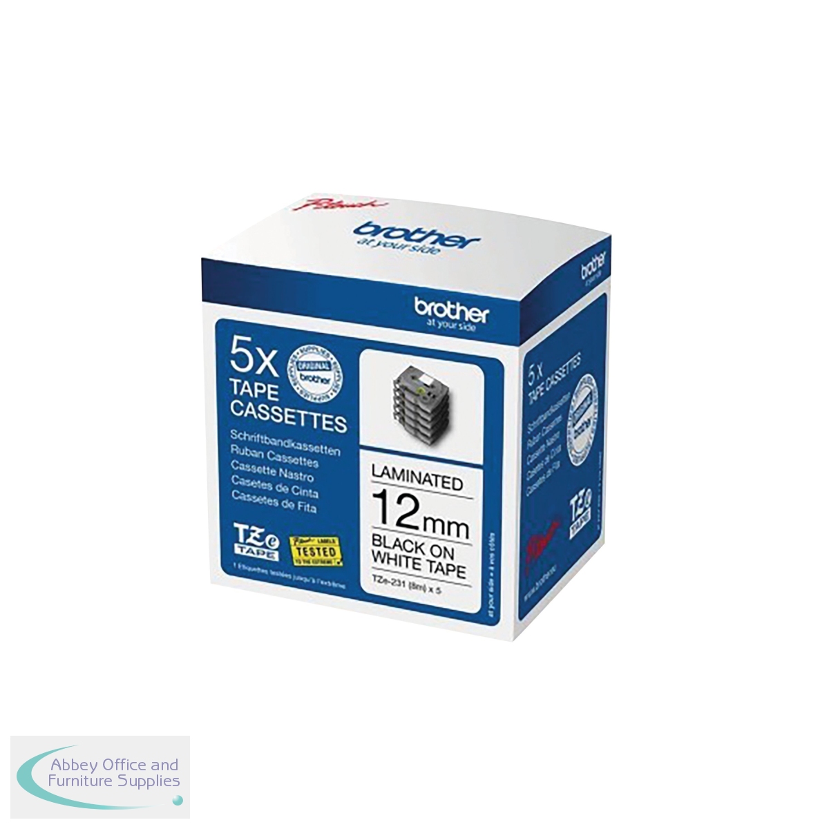 BA80279 - Brother P-Touch Tze Lam Labelling Tape Cassettes 12mmx8m Black/White Tape (Pack of 5) TZE231M5