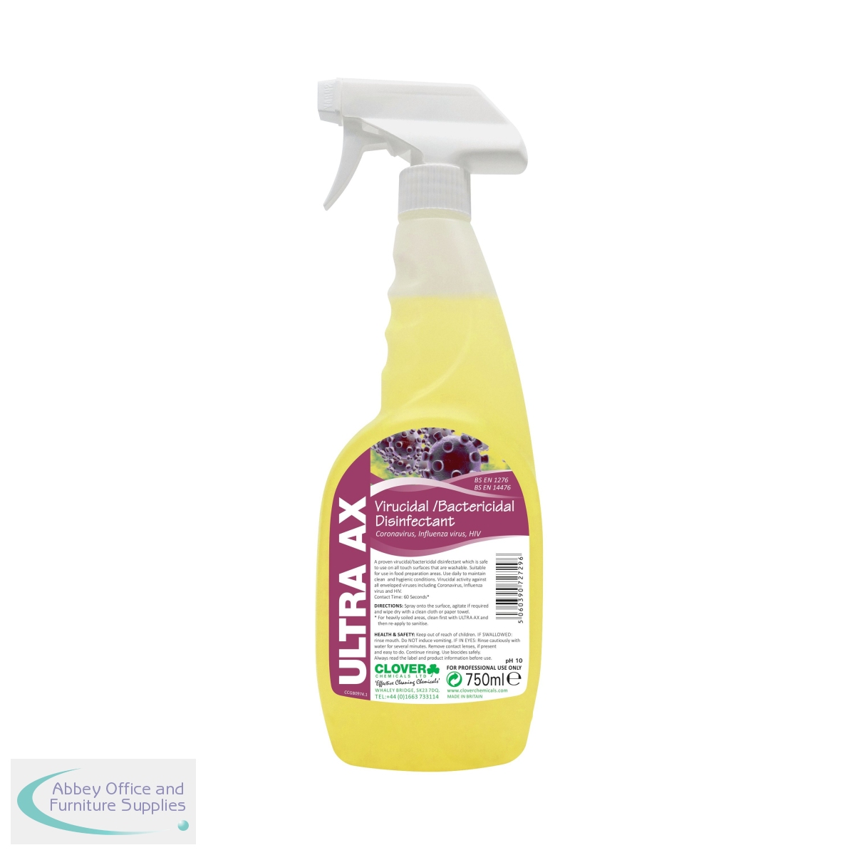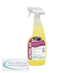 Ultra AX is a new Virucidal/Bactericidal disinfectant which is safe to use on all touch surfaces that are washable. For use daily to maintain clean and hygienic conditions. The Viricidal activity will act against all enveloped viruses including Coronavirus, Influenza virus and HIV. Supplied in a 750ml spray bottle. Fragrance Free.