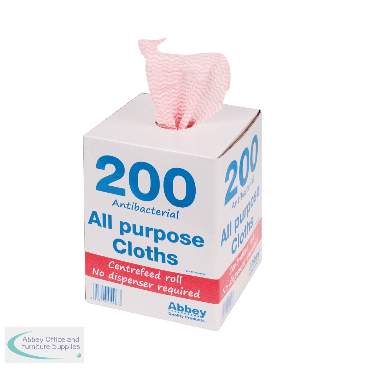 These general purpose, semi disposable cloths have an antibacterial coating for a hygienic clean over several uses. The roll of 200 cloths come in a handy dispenser box for hygienic storage and easy access. Each 40gsm cloth measures 220 x 370mm. Use as part of a colour coordinated cleaning system to avoid cross contamination. This pack contains 200 red cloths.