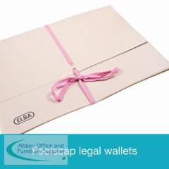 These traditional buff coloured foolscap UK legal wallets are made from 360gsm manilla with wrap around security ribbons and sealed cloth gussets to ensure documents are kept safe and secure. The foolscap wallet has a large 100mm capacity for storing up to 100 sheets of 80gsm paper. The wallet is 100% recyclable and is supplied in a pack of 25 wallets.