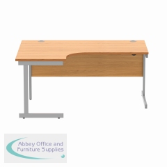 KF821380 - Polaris Left Hand Radial SU Cantilever Desk 1600x1200x730mm Norwegian Beech/Silver KF821380