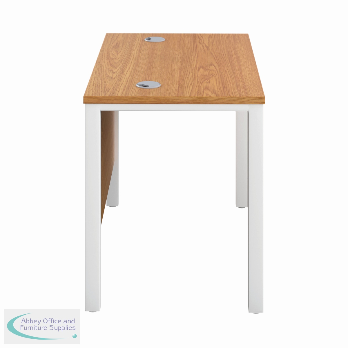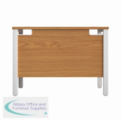 Combining simplicity with contemporary modern design, this Goal Post style desk from Jemini is ideal for use either in the office or in a homeworking environment. With a highly durable 25mm top thickness and measuring 1000x600x730mm, this rectangular desk comes in a pristine Nova Oak finish with a white coloured frame.