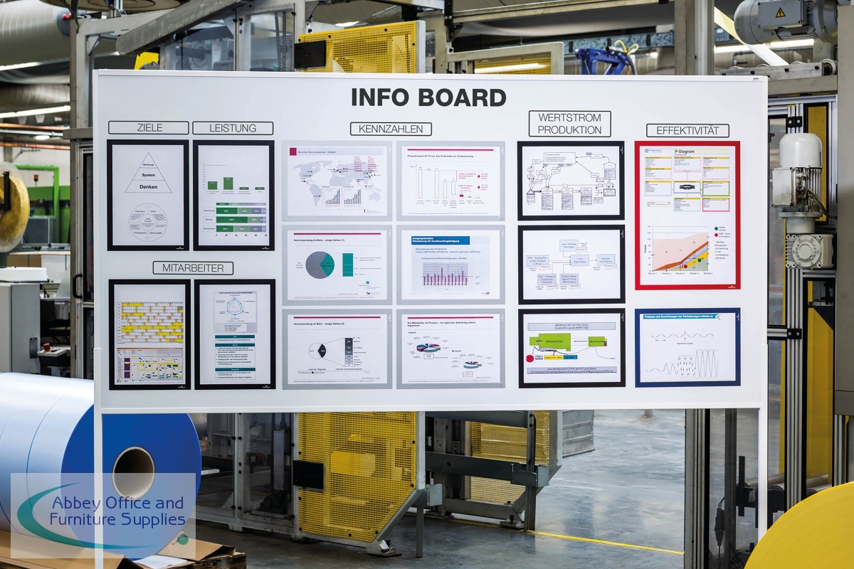 The magnetic info frame DURAFRAME is the ideal solution for displaying documents and notices on metal surfaces. The inserts can be quickly exchanged simply by lifting the magnetic frame away from the surface. Perfect for displaying information such as health and safety information and machinery maintenance checks in warehouse and production areas or on whiteboards around the office.