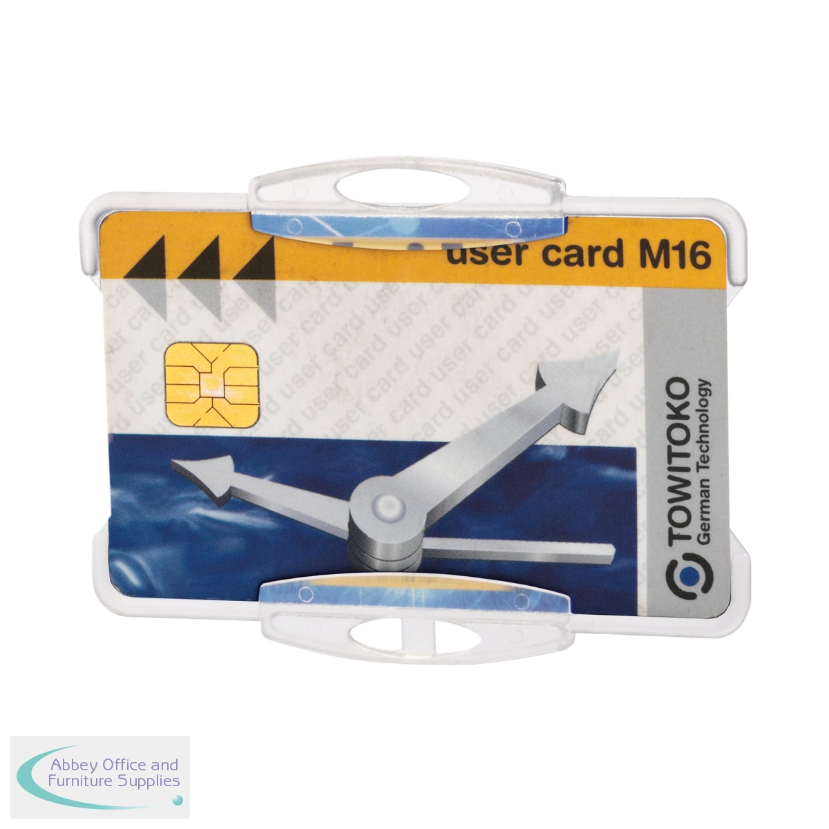 Durable Security Pass Holder for holding a single card measuring 54x85mm. Suitable for either portrait or landscape formats, the card holder is made from high quality polystyrol and can be used with a combination of chains, reels and lanyards. Designed to protect the magnetic strip on the card.