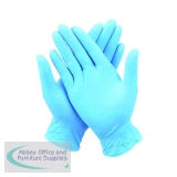 This pair of size medium gloves, made from stretchy nitrile, provide a snug fit while protecting hands from low chemical contamination and microorganisms. The gloves are seamless and made from dust free, blue nitrile, thus reducing the risk of allergic reaction. Supplied in a pack of 100.
